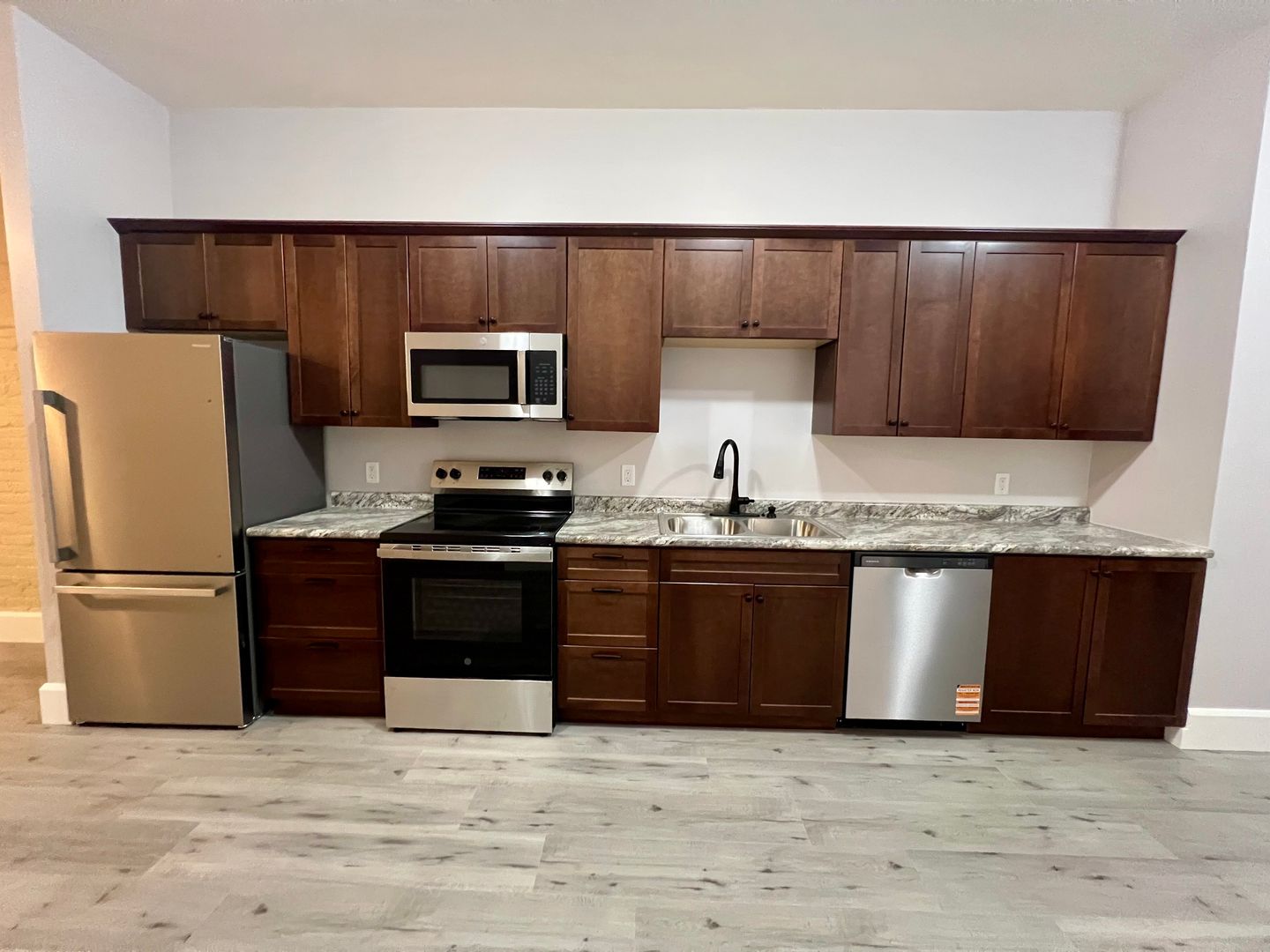 The kitchen is fully equipped with stainless steel appliances, including a refrigerator, stove, dishwasher, and microwave. Perfect for both everyday use and entertaining. The unit also features in-unit laundry hookups designed for full-size machines, adding everyday convenience.