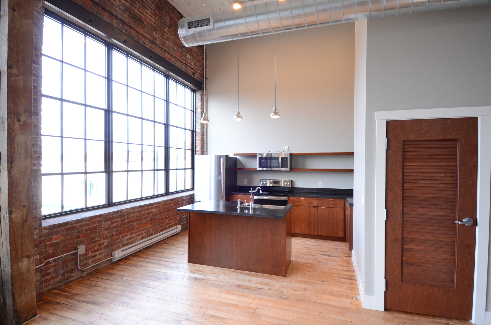 Exquisite apartment in Downtown Peoria. This historic warehouse suite has an open floor plan with high-end finishes. Washer and dryer in each unit. Stainless Steel GE appliances throughout. Designer lobby with whiskey barrel wall display.